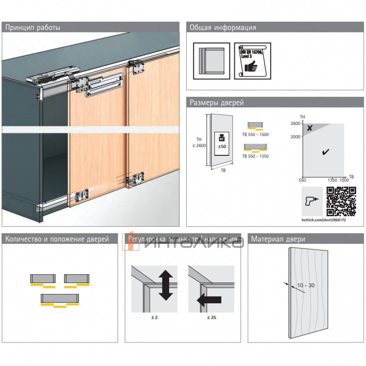 Комплект фурнитуры HETTICH Top Line L для 3 дверей, EB32, с регулировкой высоты, 9242756