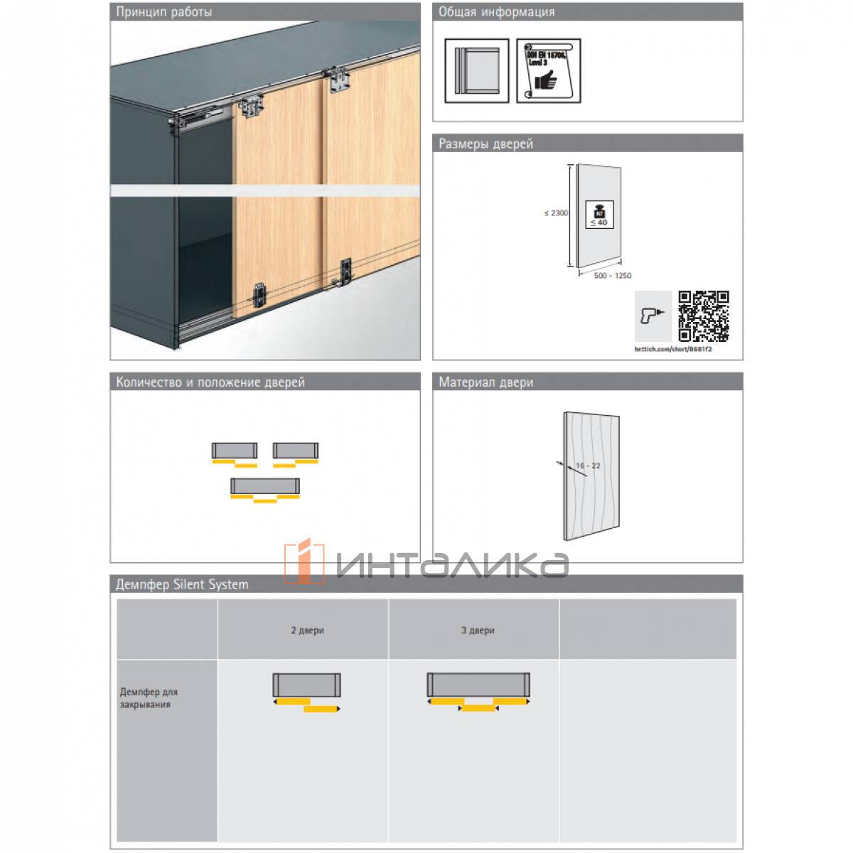 Комплект фурнитуры HETTICH TopLine M на 3 двери, EB32, без регулировки высоты, 9242686