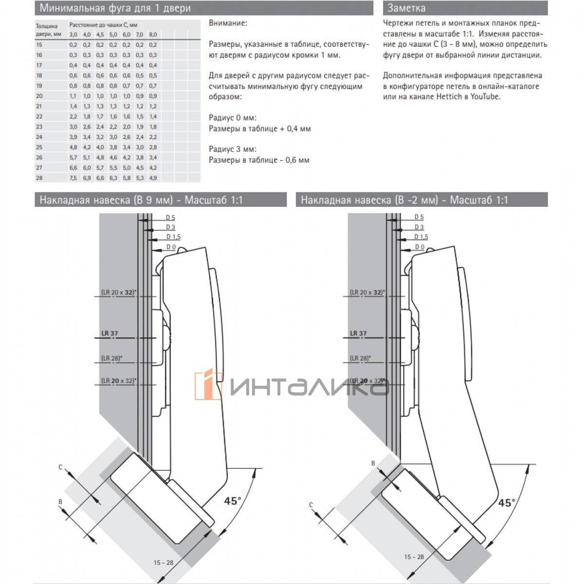 Петля HETTICH Sensys 8639i W45 (B9) 95°, ТФ 15-28, накладная, с доводчиком TH52 Ø35, никель, 9088036