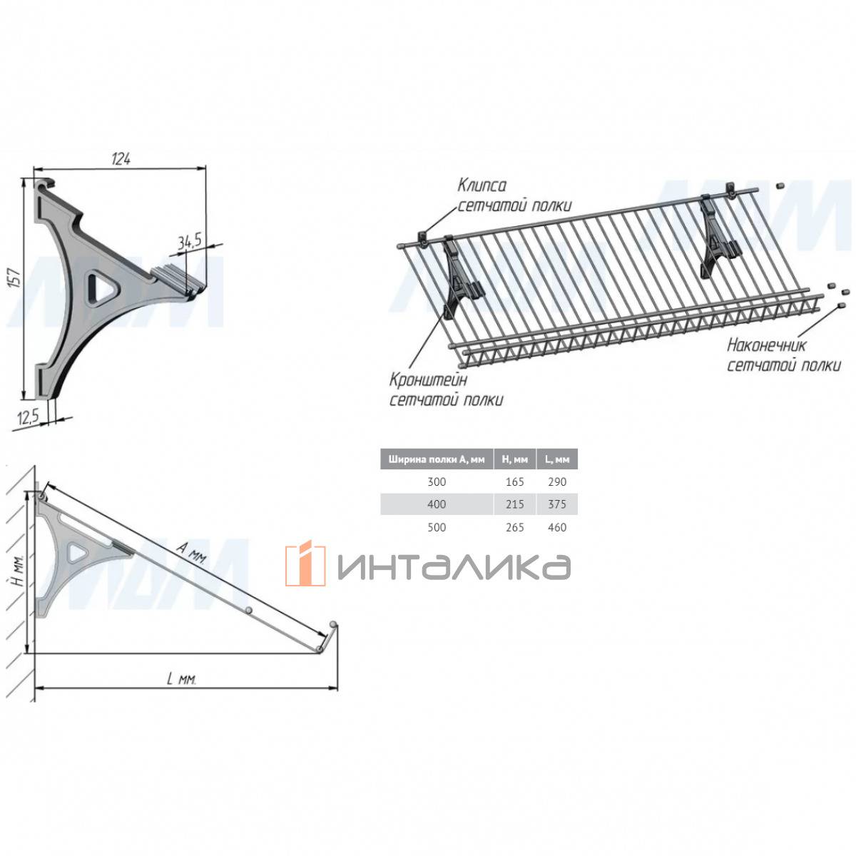 Кронштейн сетчатой полки, черный, ФПС 089-23ЧР