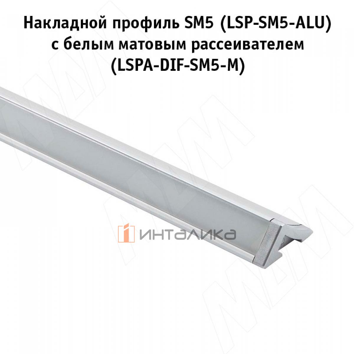 Профиль SM5, накладной, серебро, 23х11мм, L-3000, LSP-SM5-ALU-3000-AL