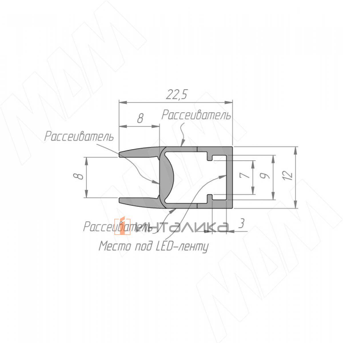Внимание! Алюминиевое основание приобретается отдельно. Основание используется в качестве теплоотвода и для ровного позиционирования светодиодной ленты в профиле