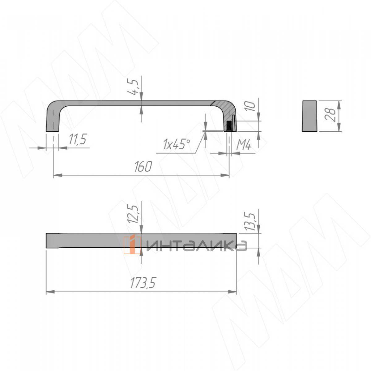 Ручка-скоба 160мм черный матовый, BH.21.160.BLM