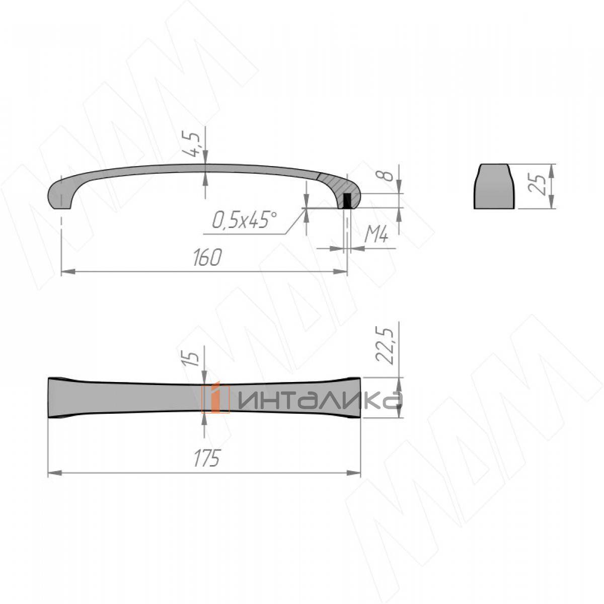 Ручка-скоба 160мм черный матовый, BH.22.160.BLM