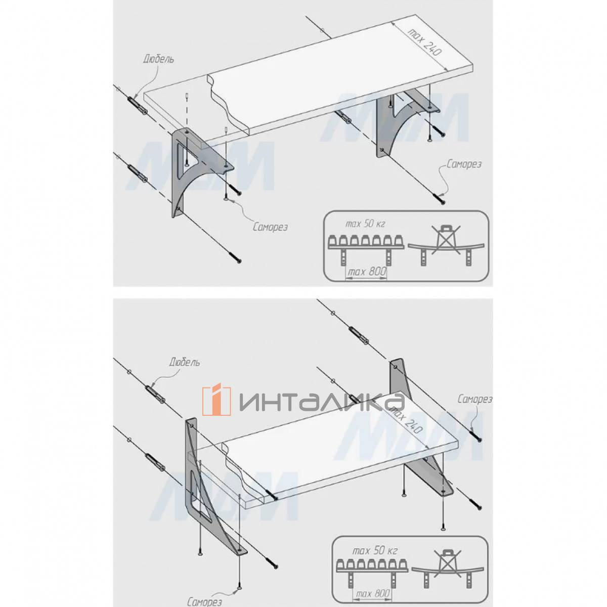 Нагрузка: до 50 кг на два менсолодержателя