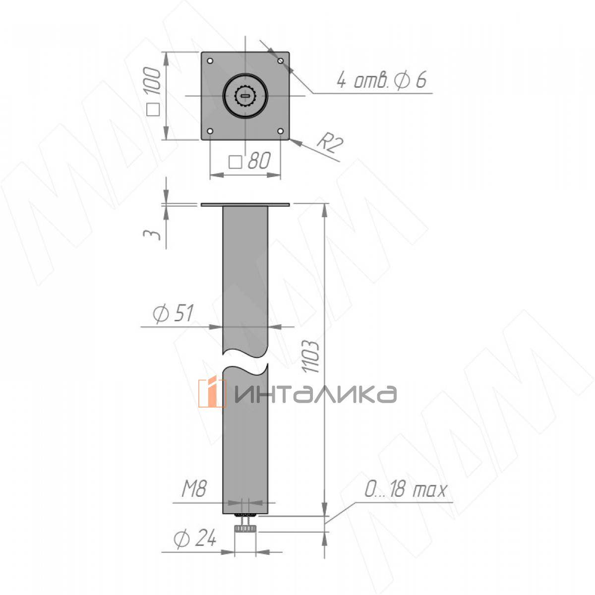 Комплектация: опора, ножка регулируемая M8×27 мм