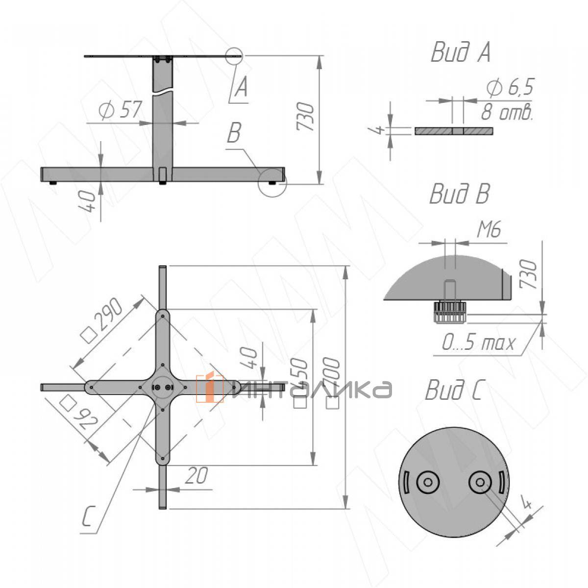 Комплектация: опора, ножка регулируемая — 4 шт.