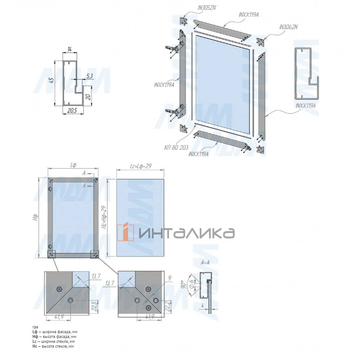 INTEGRO Профиль рамочный широкий, 45х20х4, золото брашированное (анод), L-3000, IN05137A-S3