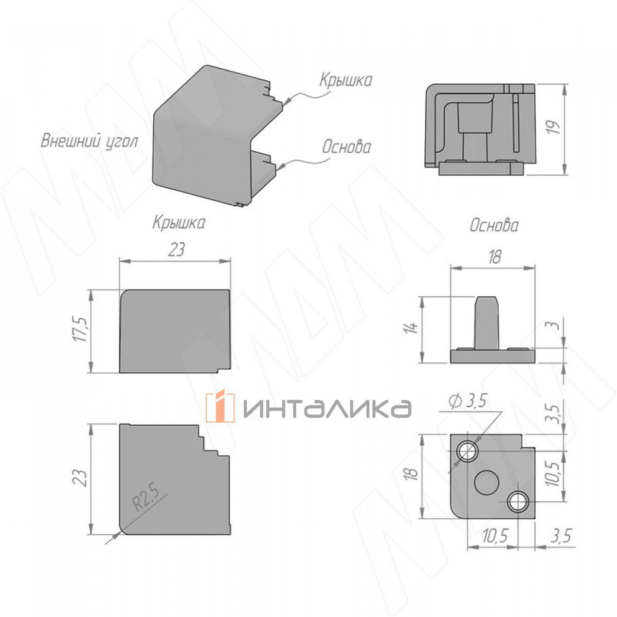 Комплектация: внутренний угол 90° - 1 компл., внешний угол 90° - 1 компл., трёхмерный угол - 1 компл., торцевая заглушка - 2 шт.