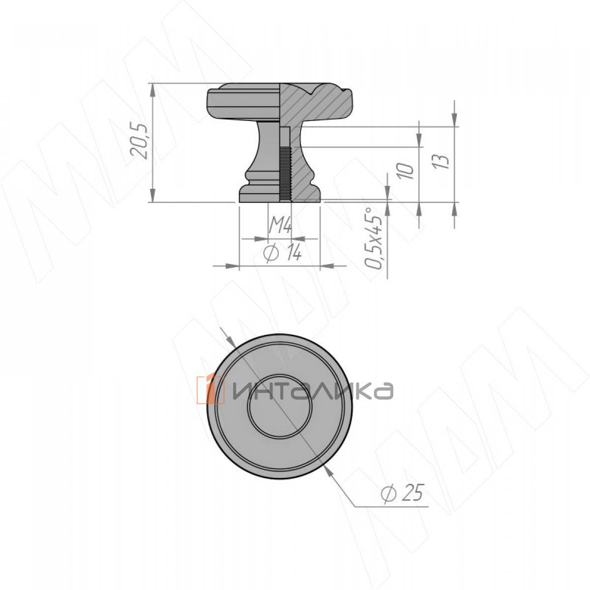Комплектация: ручка, винт М4×25 мм - 2 шт.