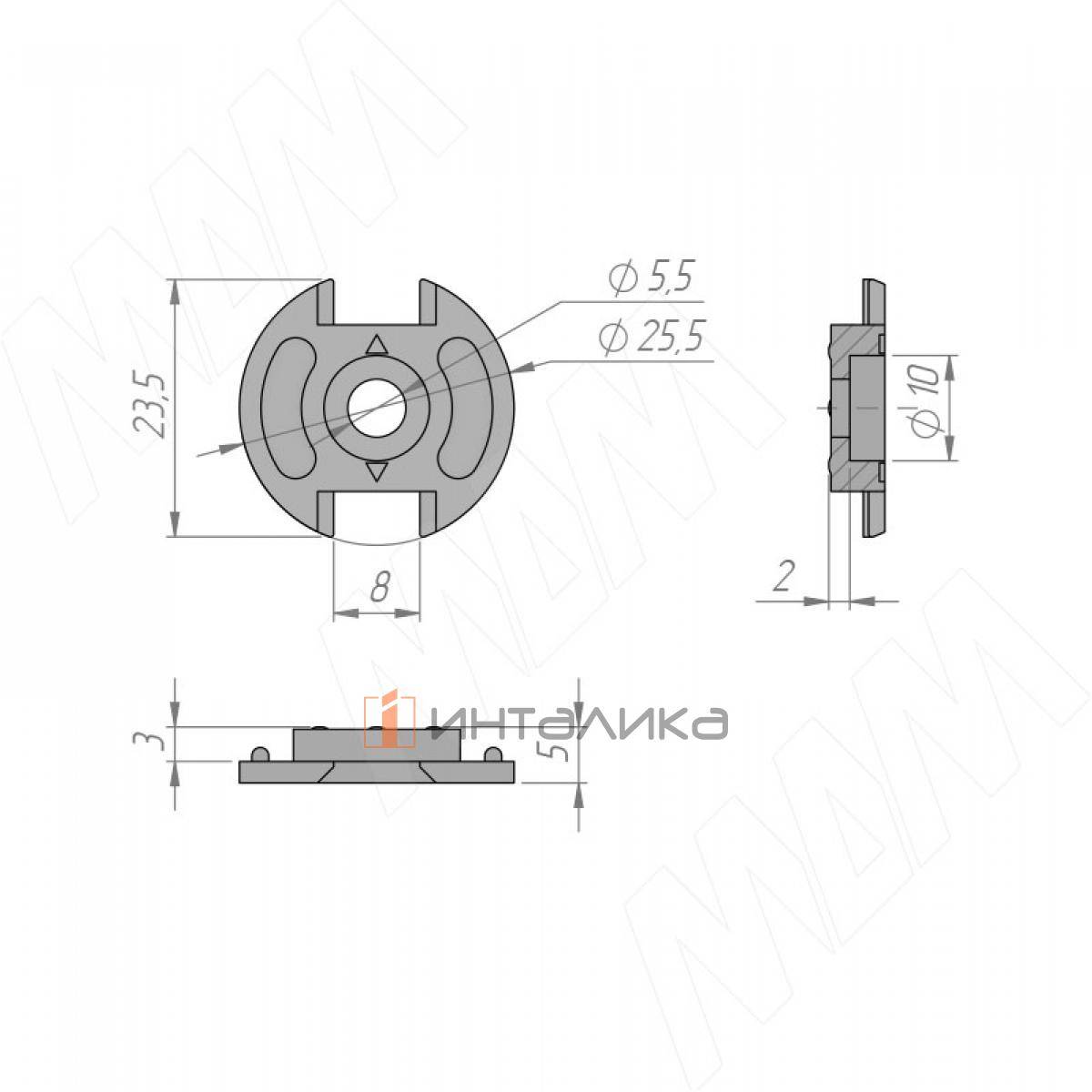 Практически незаметный штангодержатель для круглой трубы. В установленном виде сливается в единую линию со штангой.