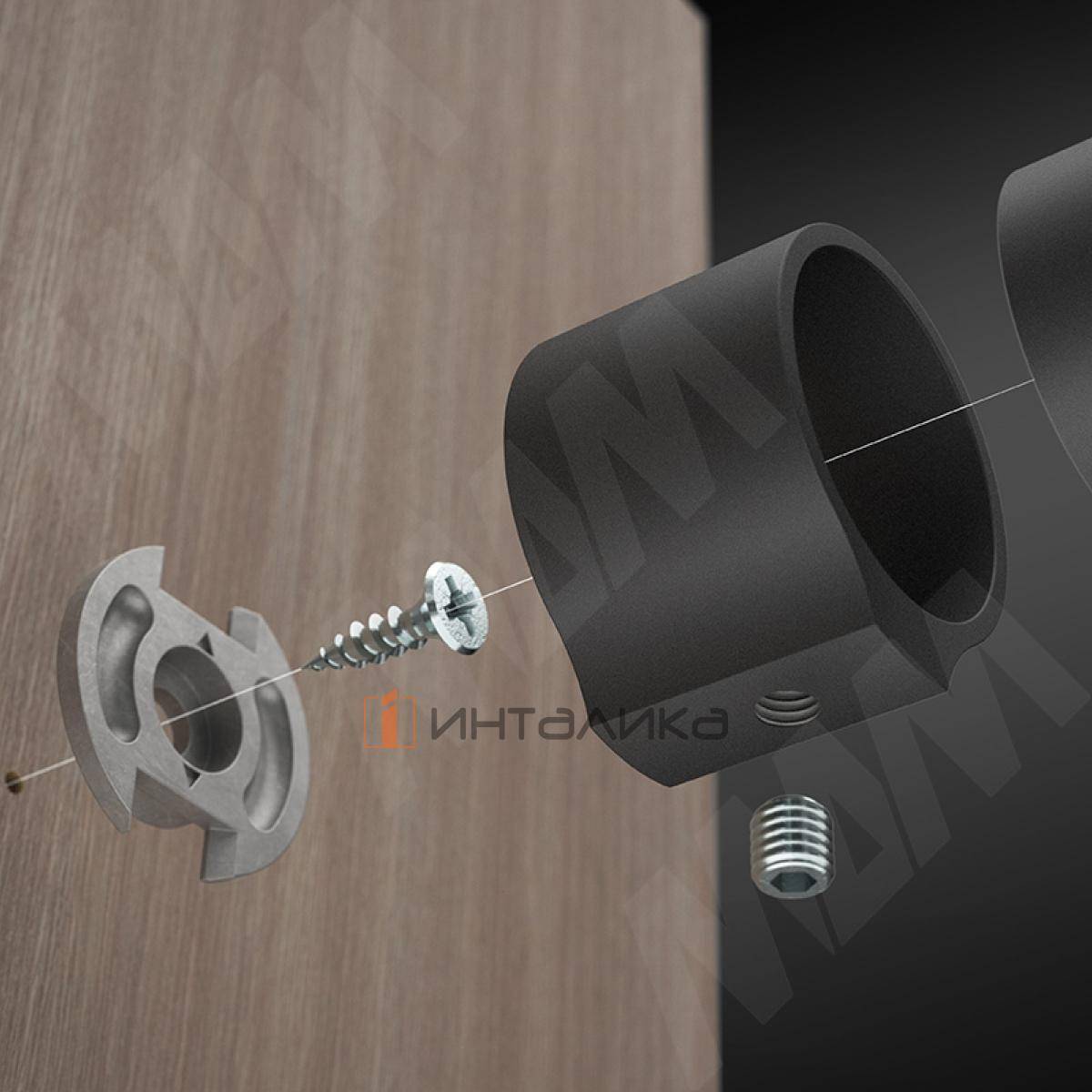 Для установки штангодержателя необходимо установить ответную часть на боковую панель шкафа, затем устанавливается труба с держателем.