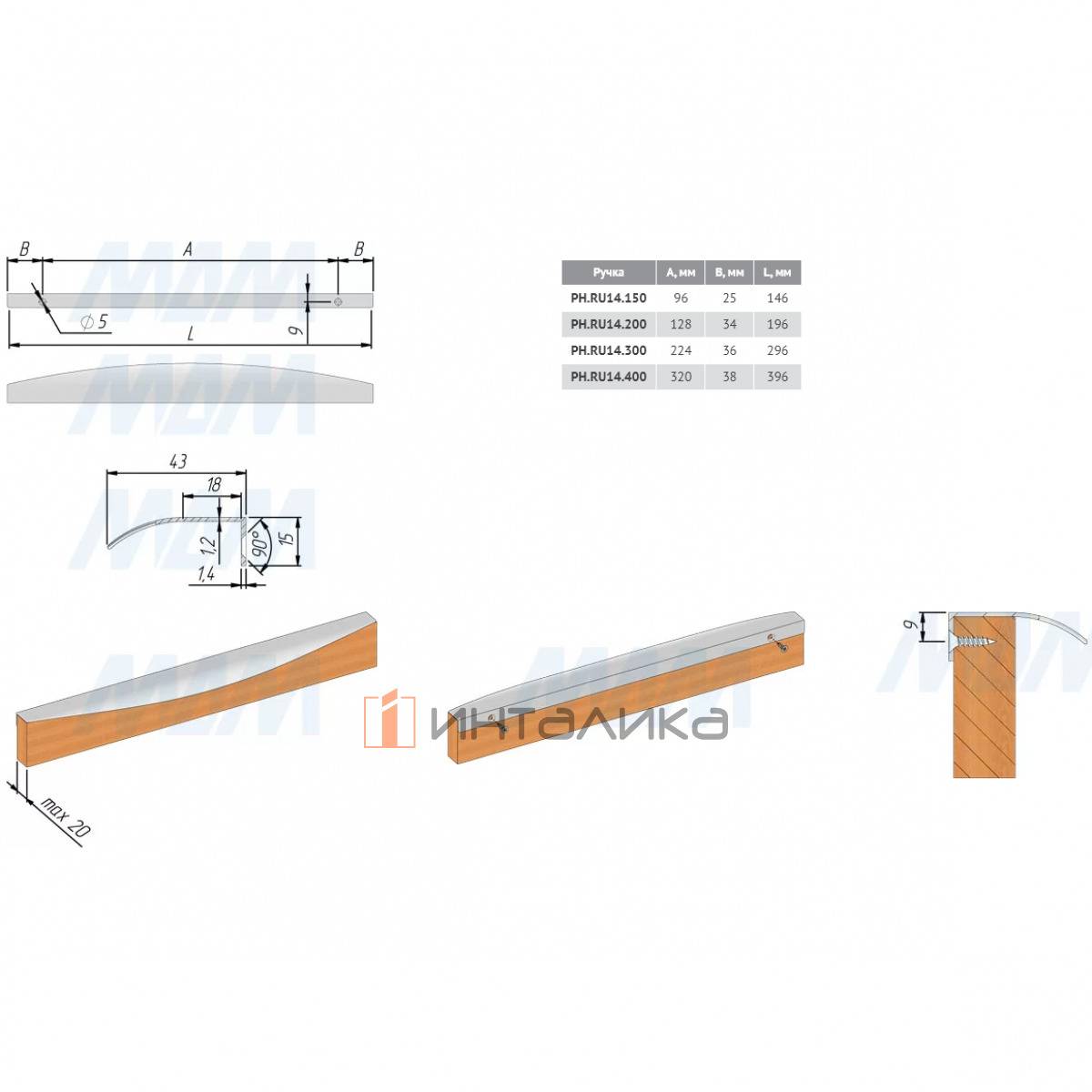 Профиль-ручка 296мм крепление саморезами графит, PH.RU14.300.GR