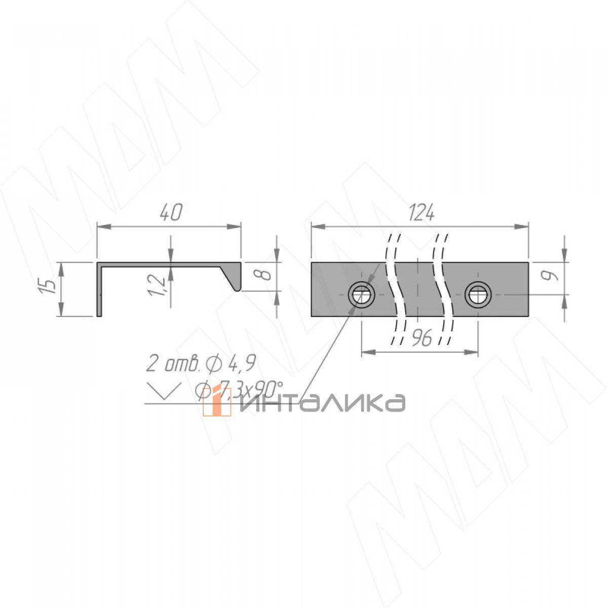 Профиль-ручка 96мм (L=124мм) крепление саморезами белый матовый, PH.RU01.096.WHT