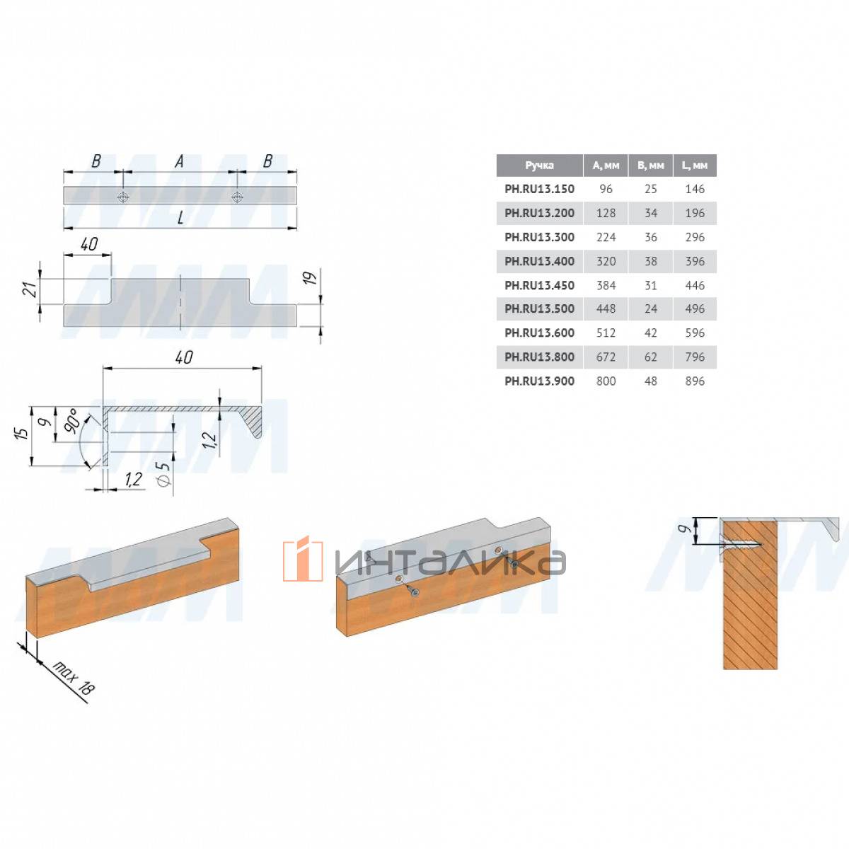 Профиль-ручка 796мм крепление саморезами золото матовое, PH.RU13.800.GL