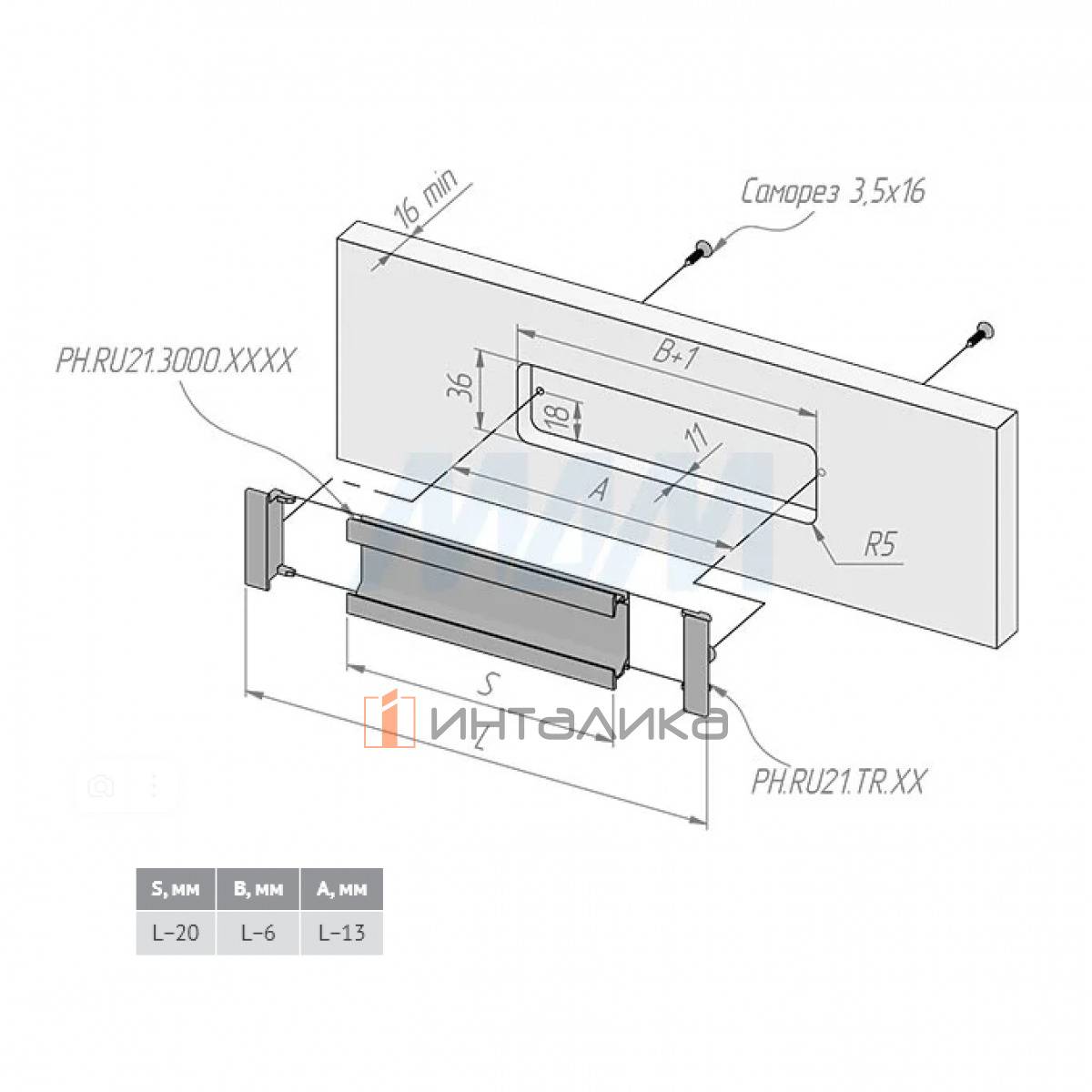 Используется с торцевыми заглушками PH.RU21.TR
