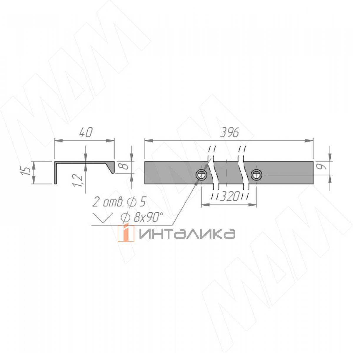 Профиль-ручка 396мм крепление саморезами алюминий матовый, PH.RU01.400.AL