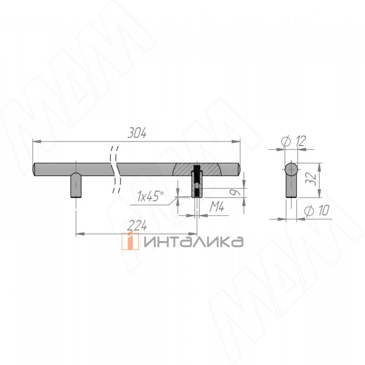 Ручка-рейлинг 224мм хром матовый, RH.01.224.SC