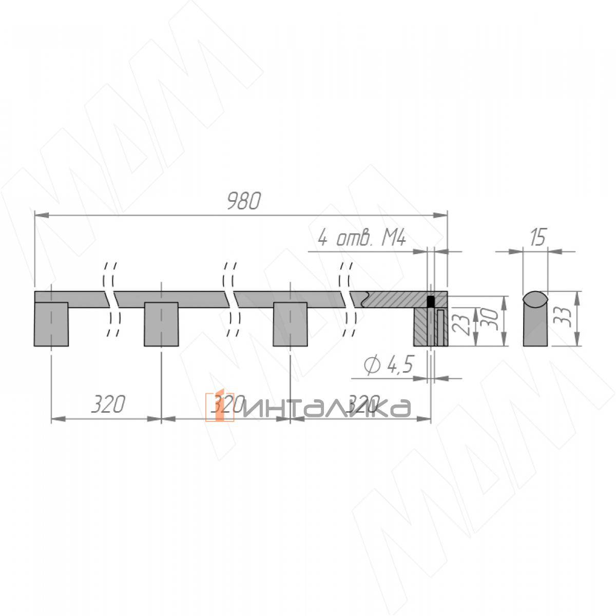 Ручка-рейлинг 320мм (L=980мм) черный матовый, RE.C40.980.BL