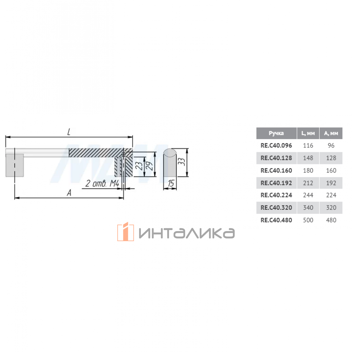 Ручка-рейлинг 224мм (L=244мм) алюминий матовый, RE.C40.224.CRM