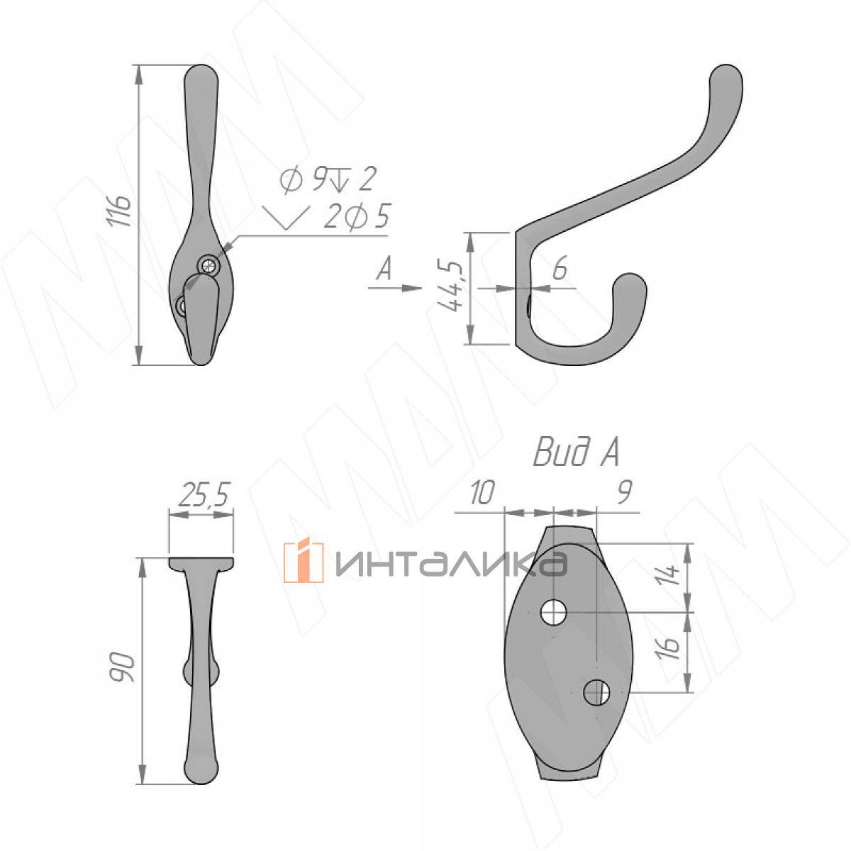 Комплектация: крючок с крепежом (саморез 4×25 мм - 2 шт.)