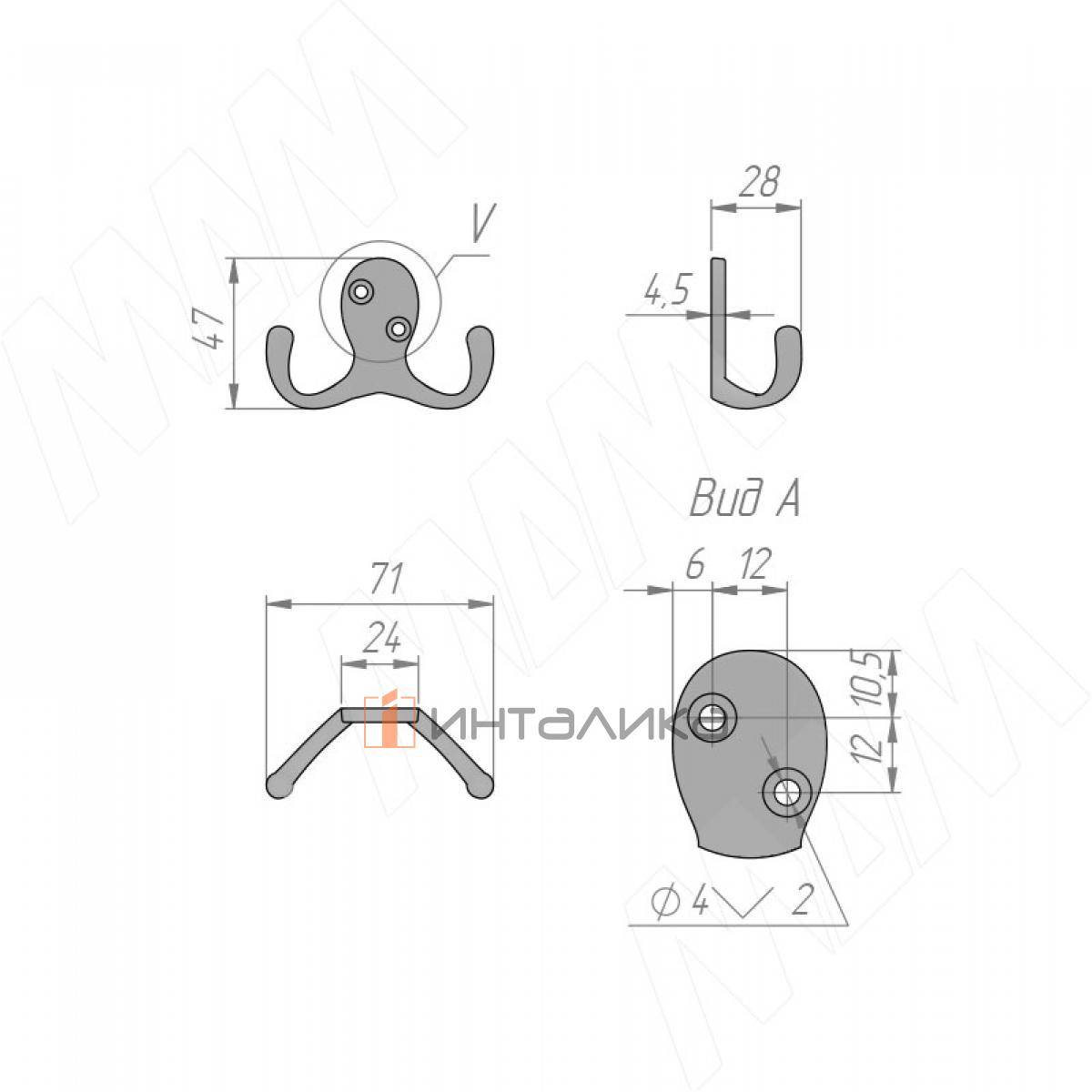 Крючок двухрожковый черный матовый, HK.12.BLM