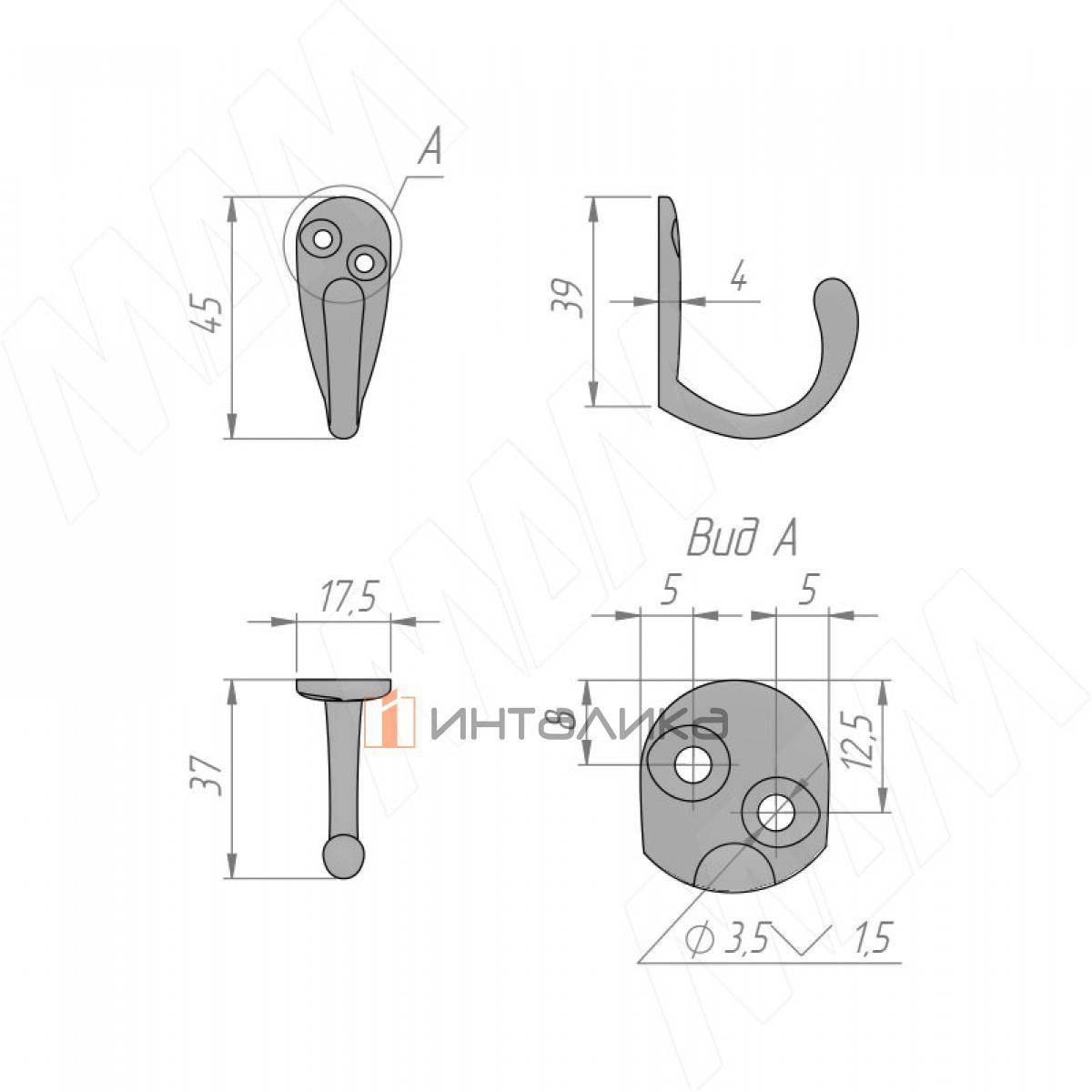 Комплектация: крючок с крепежом (саморез 3,5×20 мм — 2 шт.)