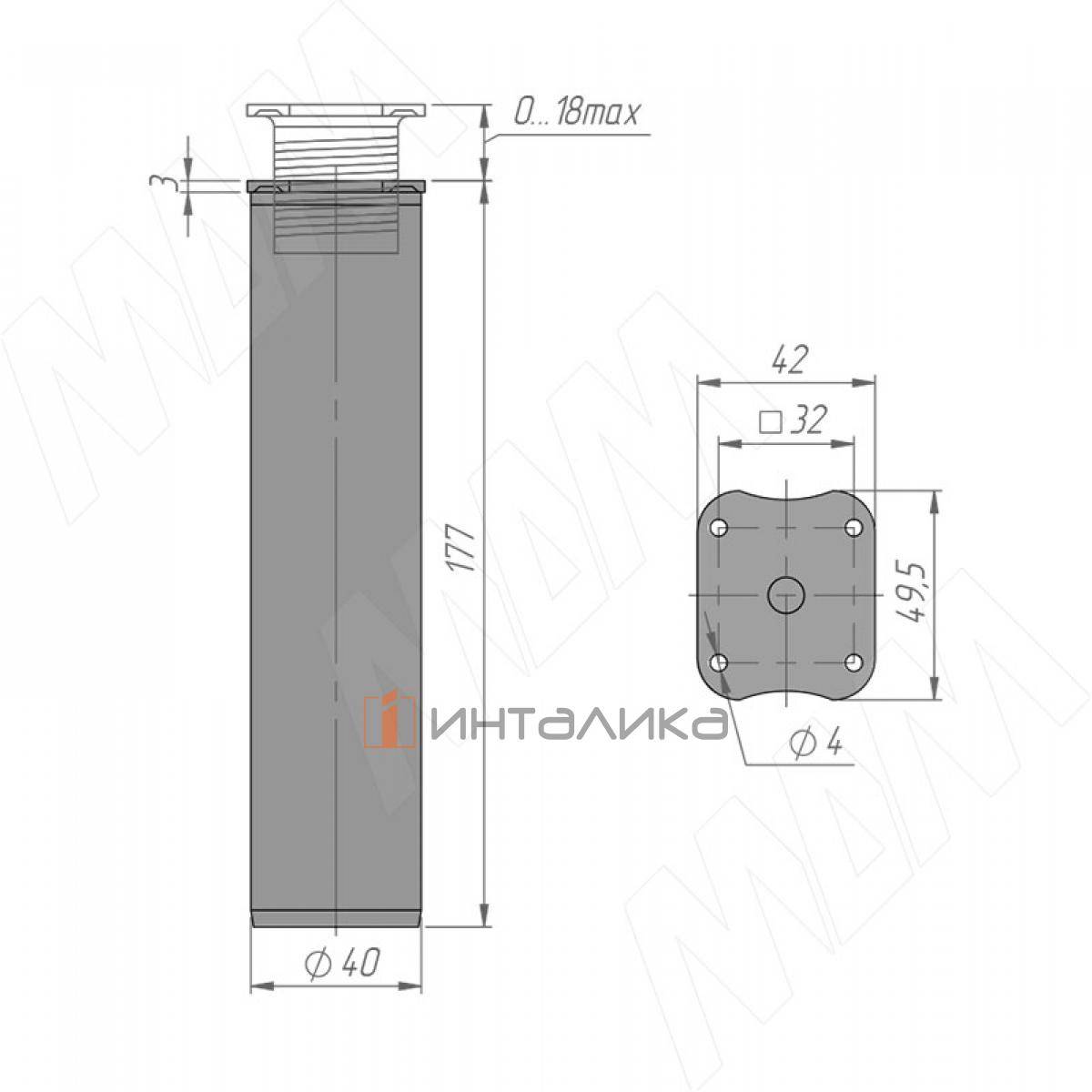 Опора декоративная D40мм, Н180+18мм черный матовый, ADJ7.180.BL