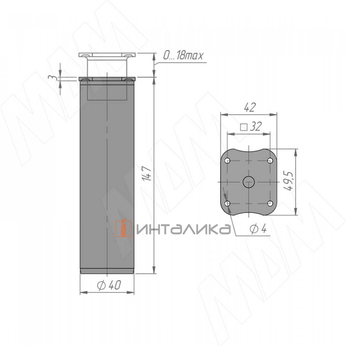 Опора декоративная D40мм, Н150+18мм черный матовый, ADJ7.150.BL