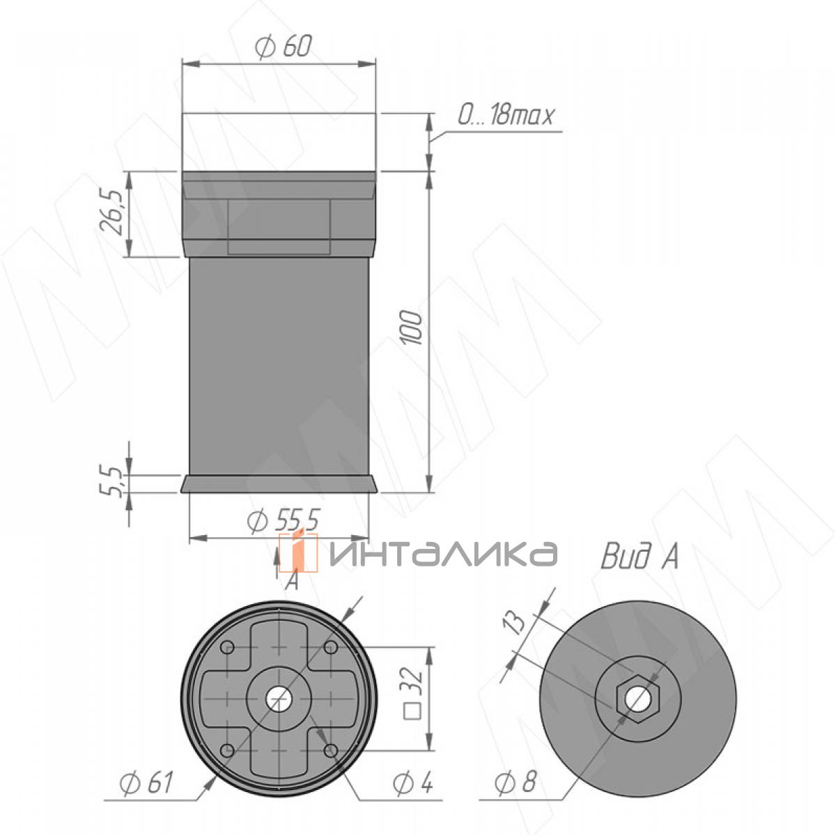 Опора декоративная D56мм, Н100+18мм хром матовый/хром (ADJ4.100.CMCR), ADJ4.100.CMCR