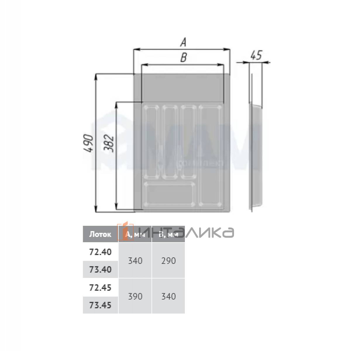 Применение: лоток универсальный — для использования с различными ящиками может потребоваться обрезка, максимальные размеры лотка и минимально возможные размеры для обрезки показаны на схеме