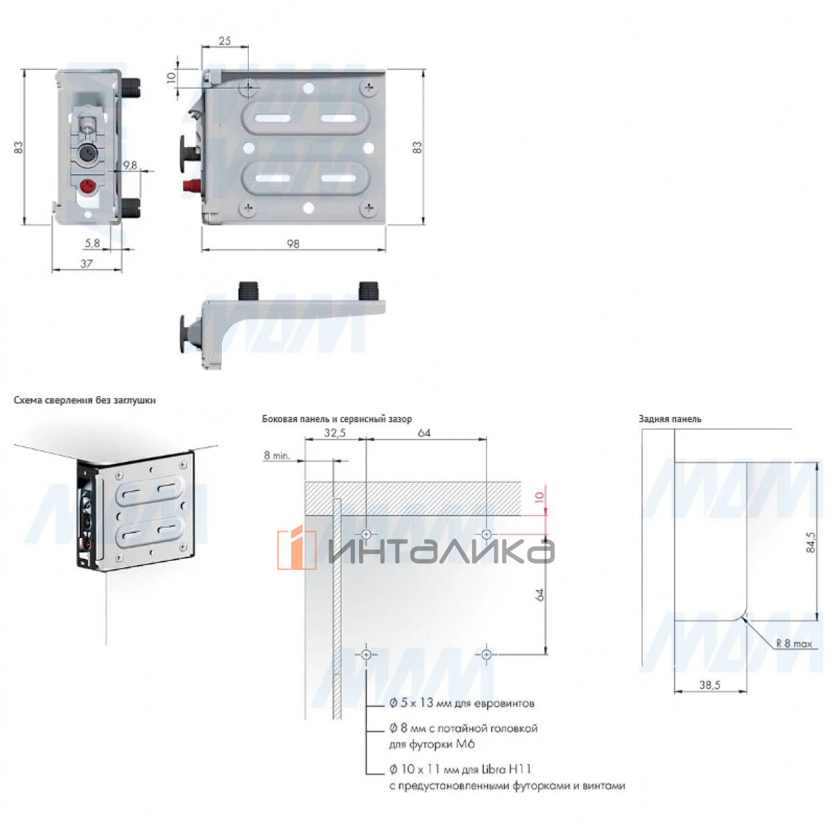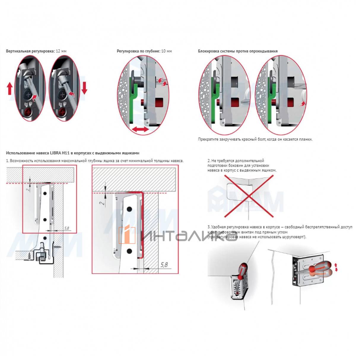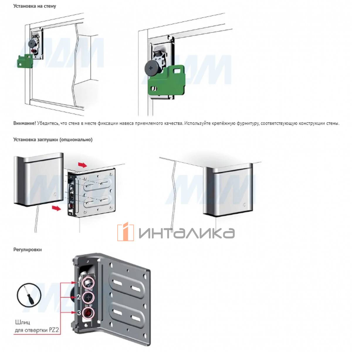 Регулировка: по высоте — 12 мм, по глубине — 10 мм (при регулировке навеса не использовать шуруповерт!)