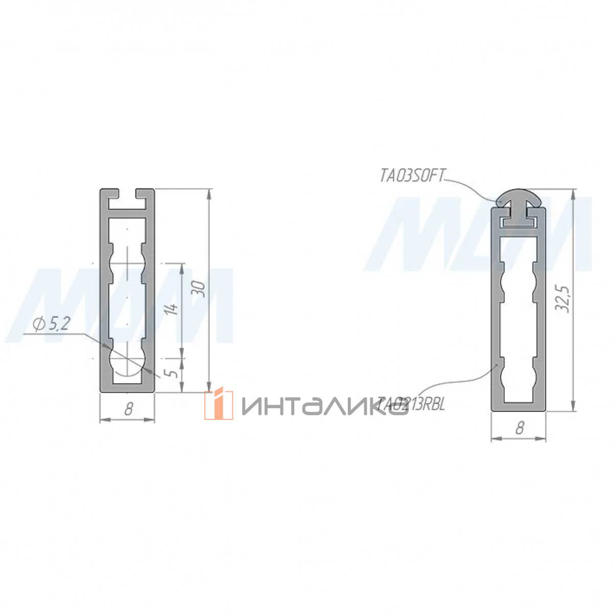 VOGUE Штанга прямоугольная 30х8, с пазом под демпфер, графит (краска), L-3000, TA0213RGP