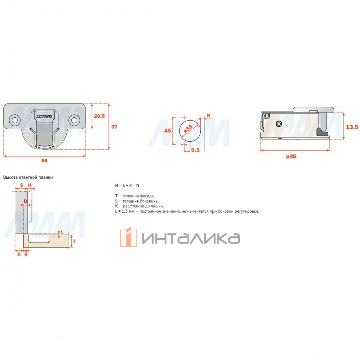 SILENTIA+ петля с доводчиком (амортизатором) полунакладная (90/110), стандартная, 45мм, C7P6GE9