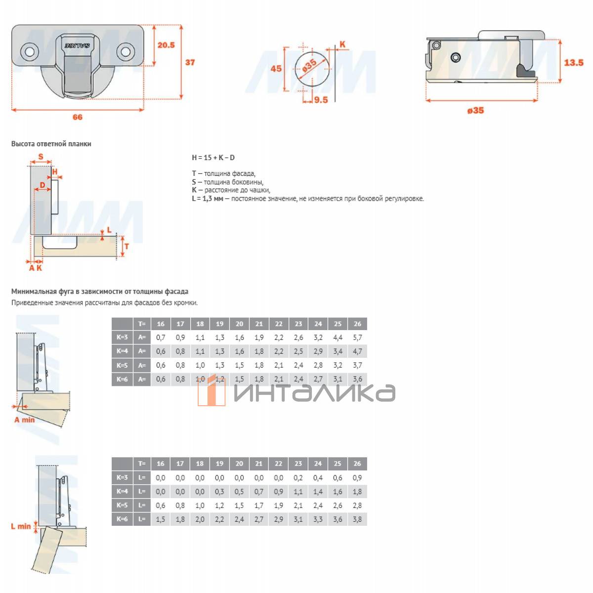 SILENTIA+ петля с доводчиком (амортизатором) накладная (90/110), стандартная, 45мм, C7P6AE9