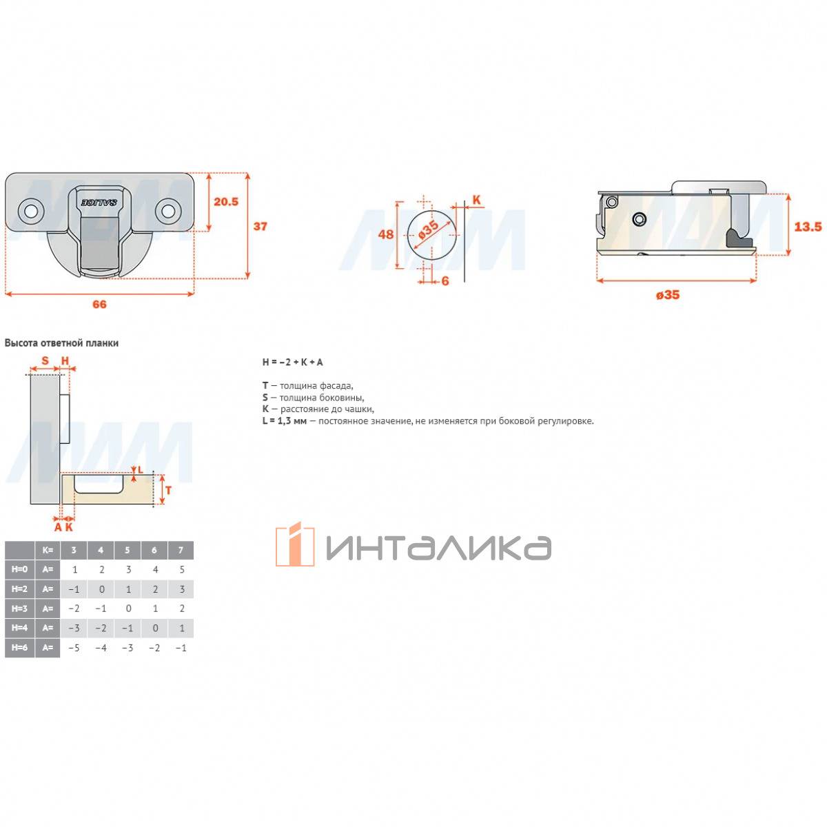 SILENTIA+ петля с доводчиком (амортизатором) вкладная (90/110), стандартная, C7A6PE9
