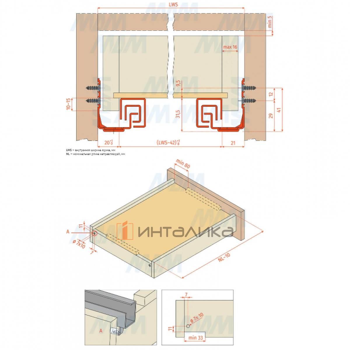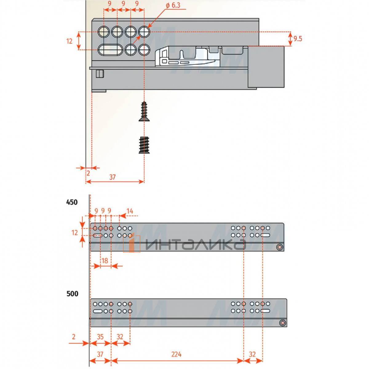 Комплект направляющих скрытого монтажа FUTURA SMOVE, полное выдвижение, плавное закрывание, 450 мм, 1065550450200