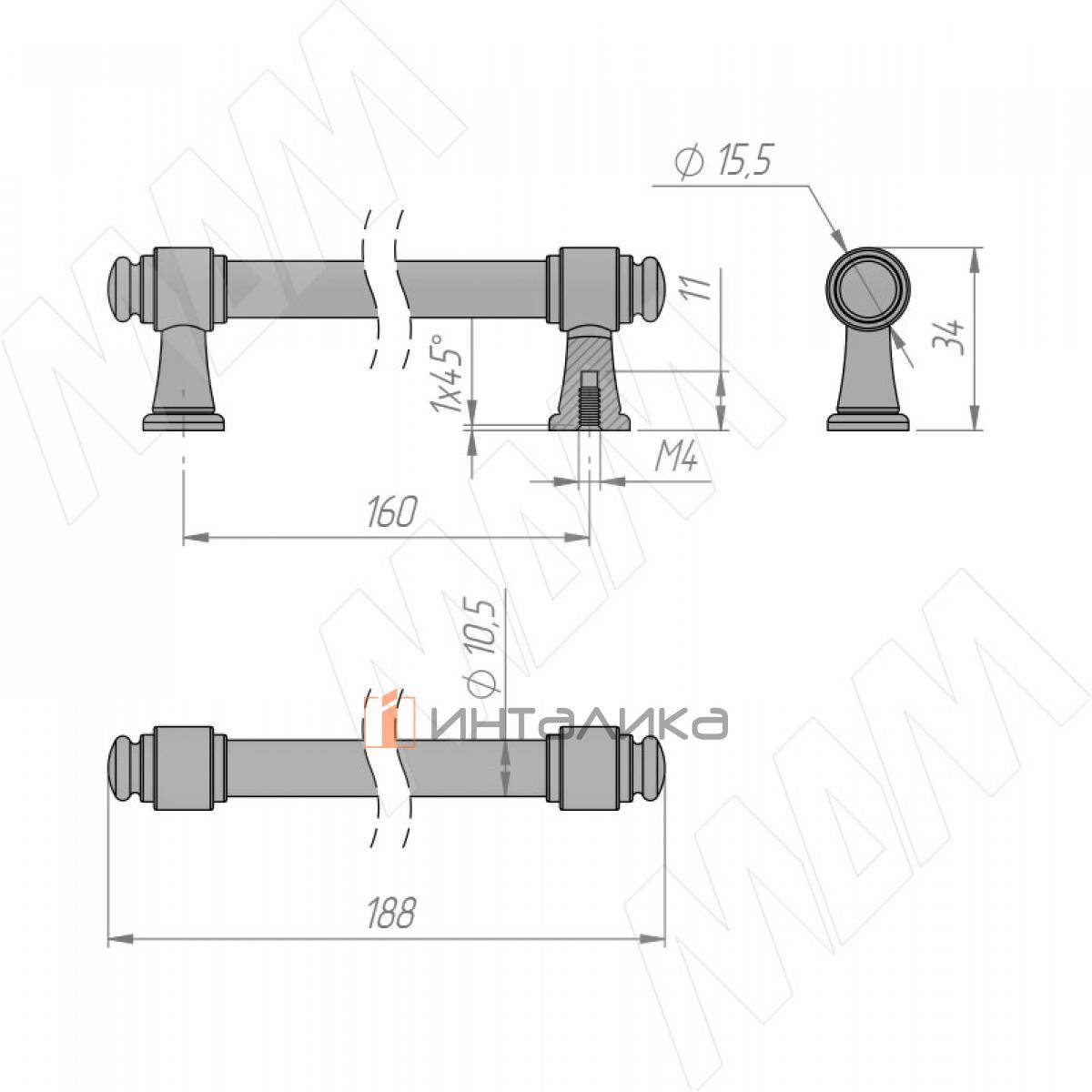 Ручка-рейлинг 160мм бронза состаренная, WMN.851.160.00D1