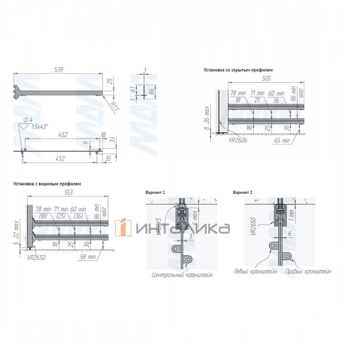 Рекомендуемая толщина полки: до 25 мм
