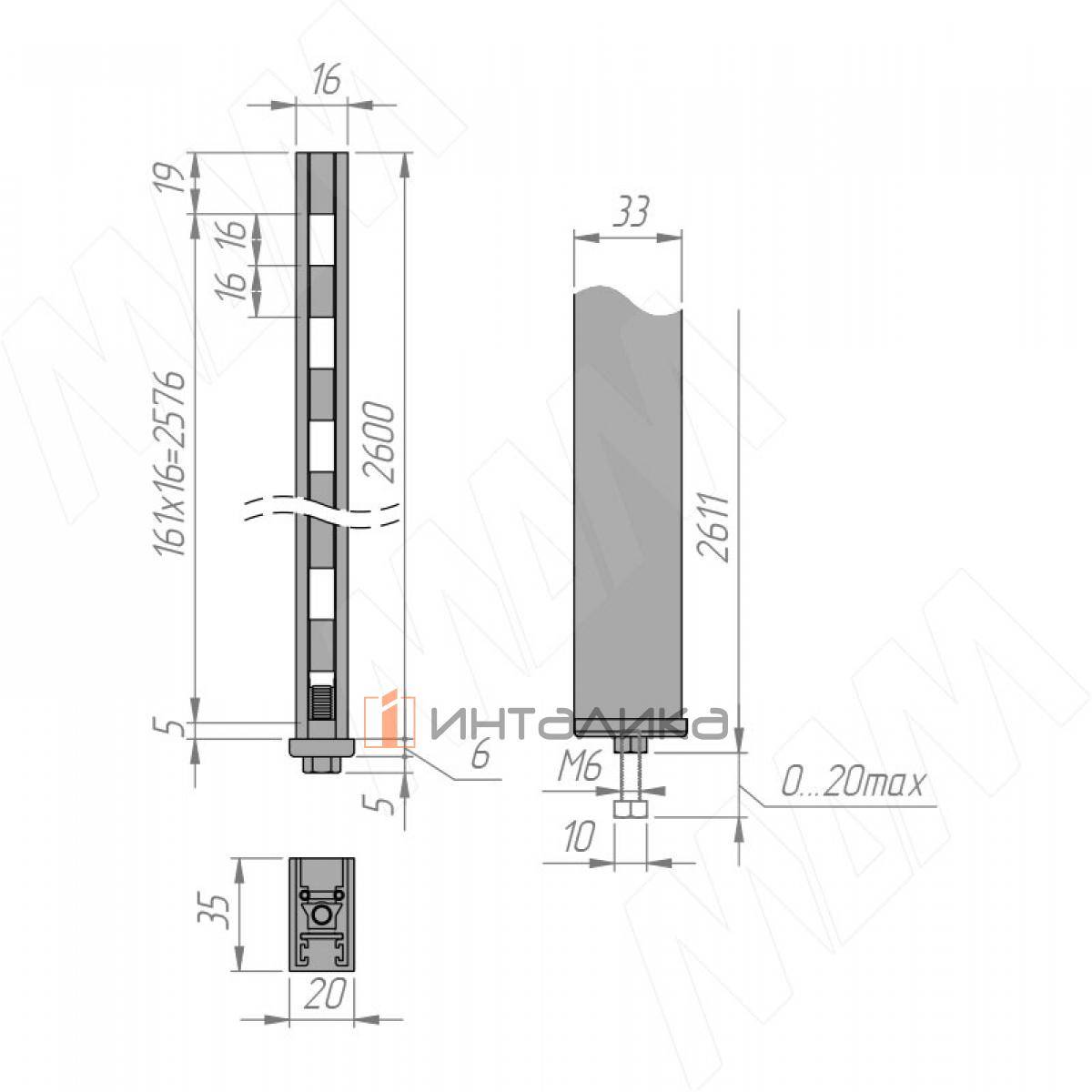Применение: профиль крепится к стене при помощи специального скрытого крепления; внизу несущего профиля находится регулируемая опора