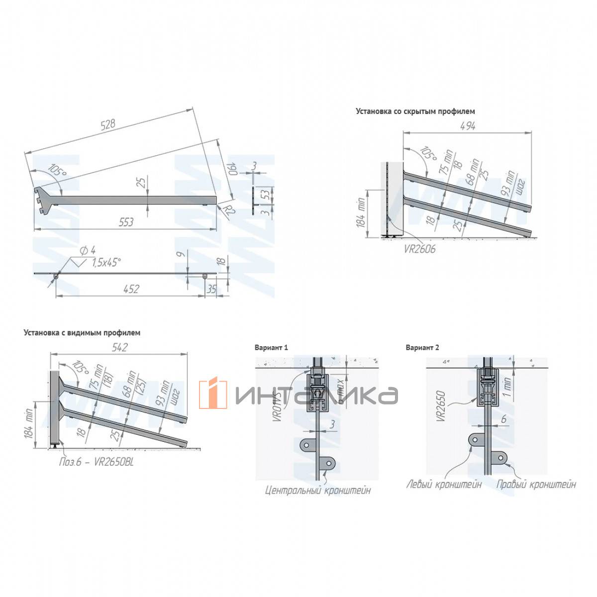 VERTIKO Полкодержатель наклонный для деревянной полки 25 мм, правый, черный, VR50SR25RBL