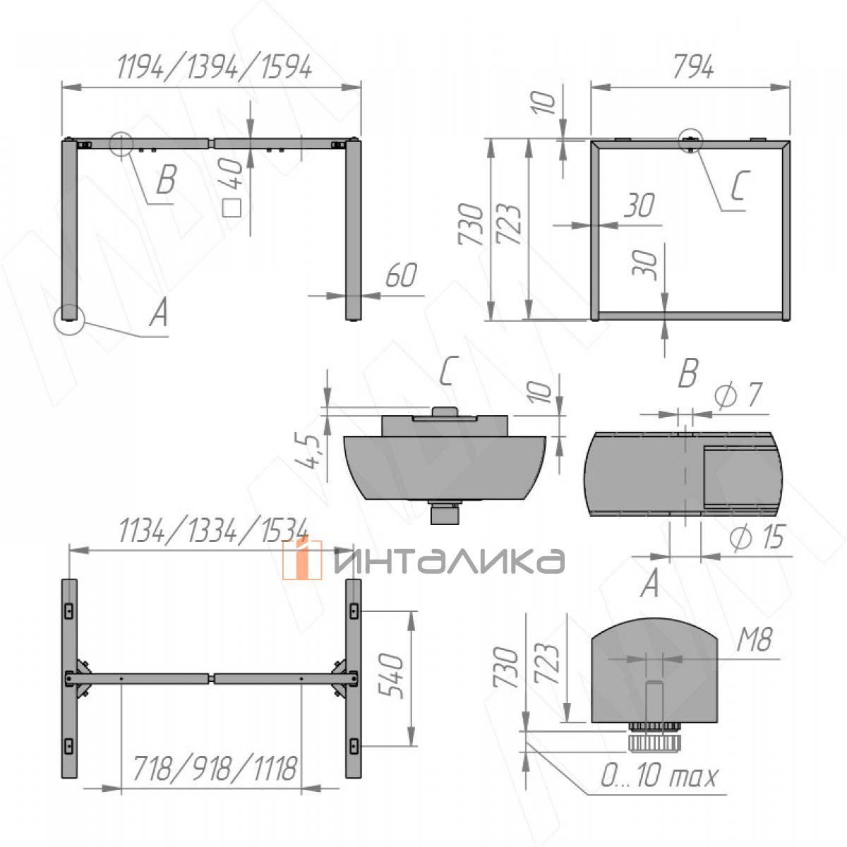 Регулировка: высота основания + 10 мм