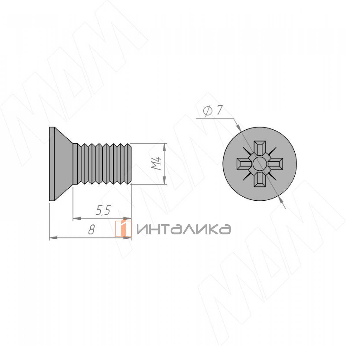 Винт с потайной головкой под крест, M4x8, золото, WS M4X8 ZGL MP