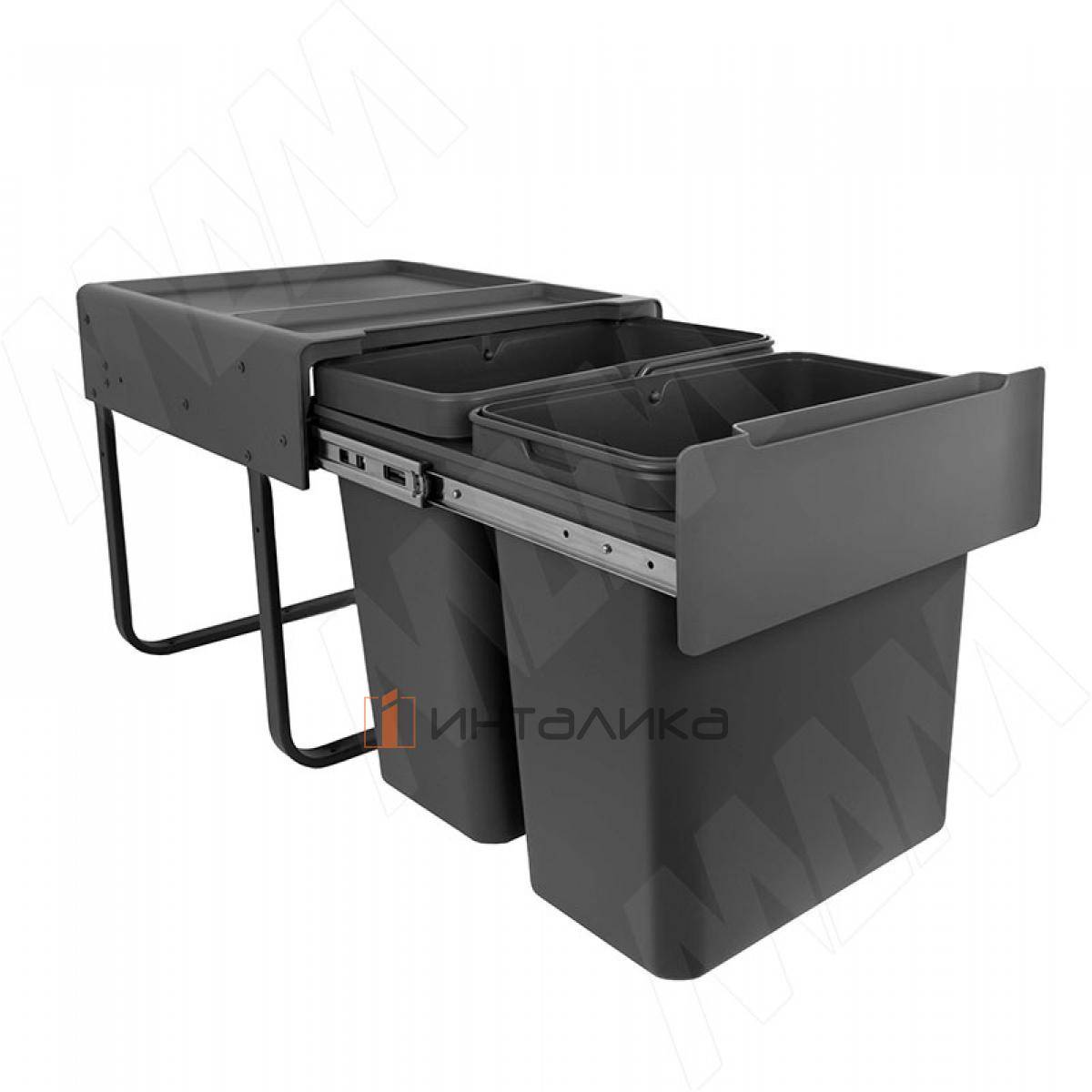 EASYBOX F45 Корзина встраиваемая для мусора выдвижная с доводчиком и крышкой-полкой, объём 50 (2x25), EMB452-50DG