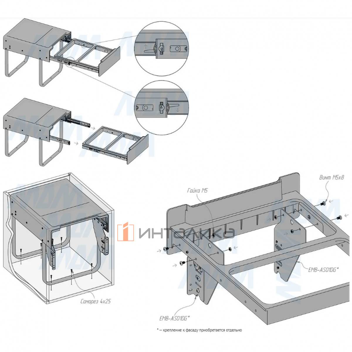 • любые типы фасадов: распашной / выдвижной (требуется дополнительно приобрести крепления фасада EMB-AS01DG);