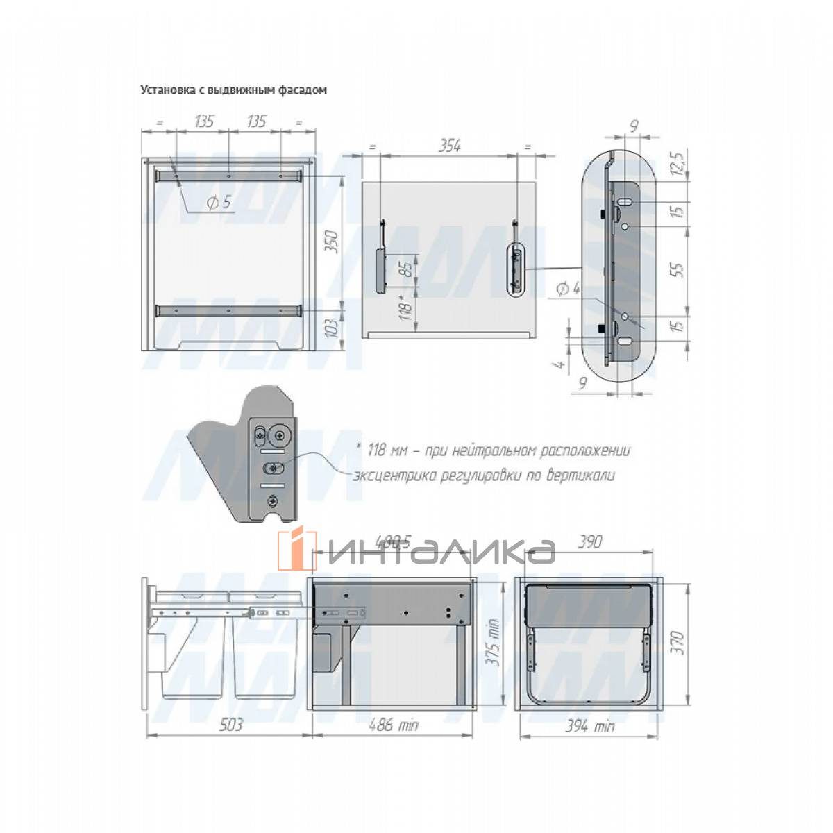 EASYBOX F45 Корзина встраиваемая для мусора выдвижная с доводчиком и крышкой-полкой, объём 44 (2x22), EMB452-44DG