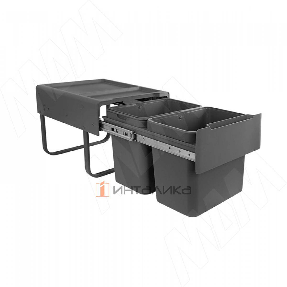 EASYBOX F40 Корзина встраиваемая для мусора выдвижная с доводчиком и крышкой-полкой, объём 30 (2x15), EMB402-30DG