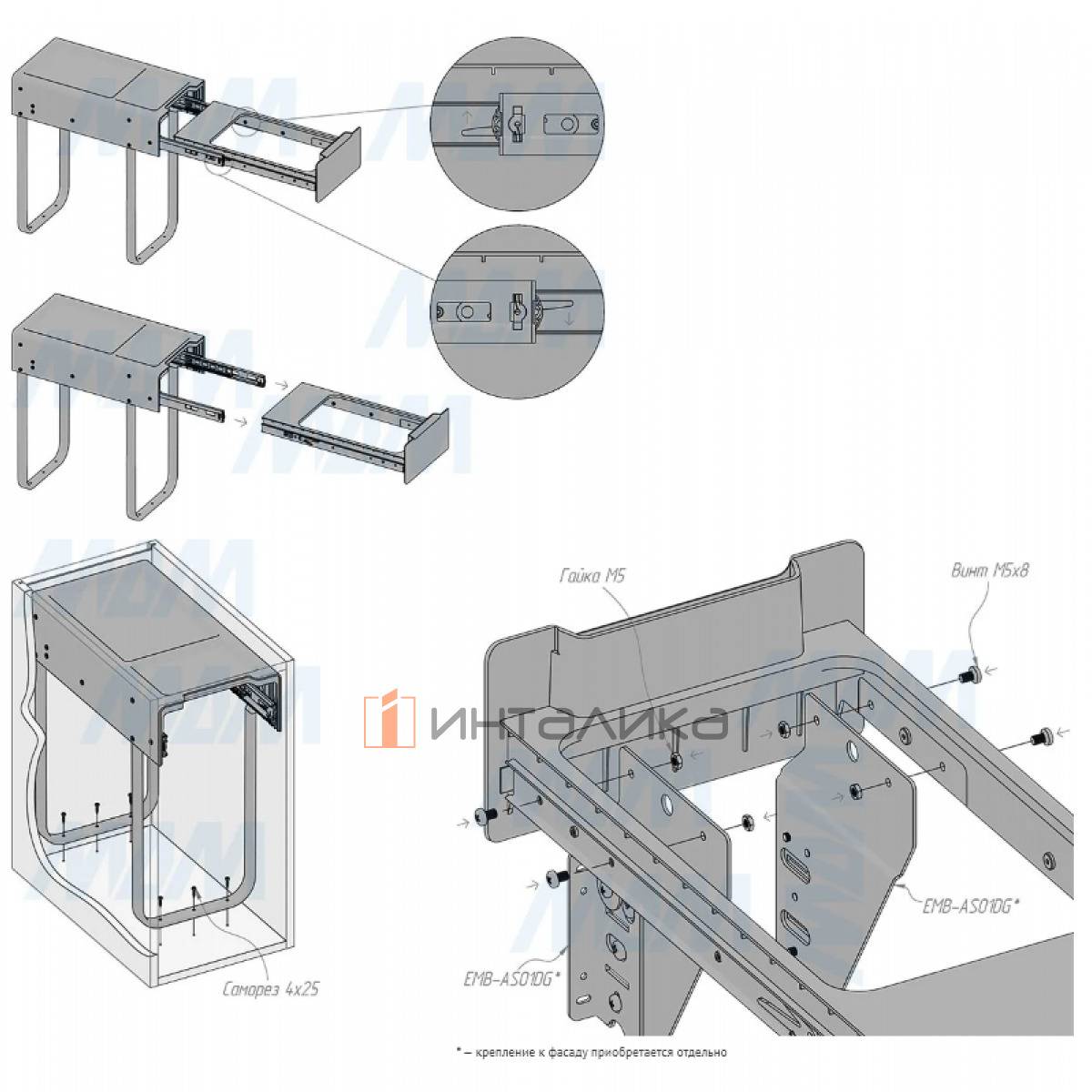 • любые типы фасадов: распашной / выдвижной (требуется дополнительно приобрести крепления фасада EMB-AS01DG);
