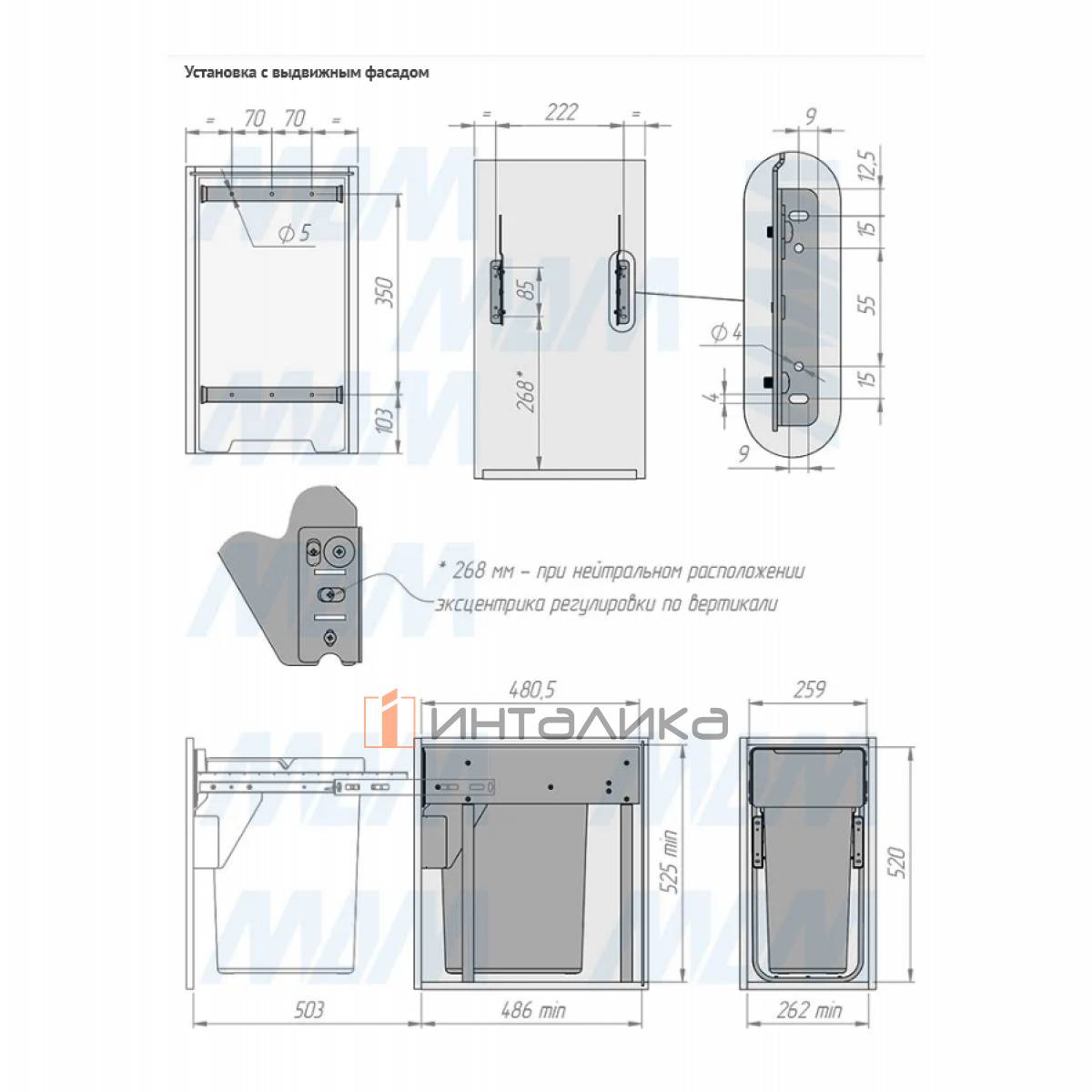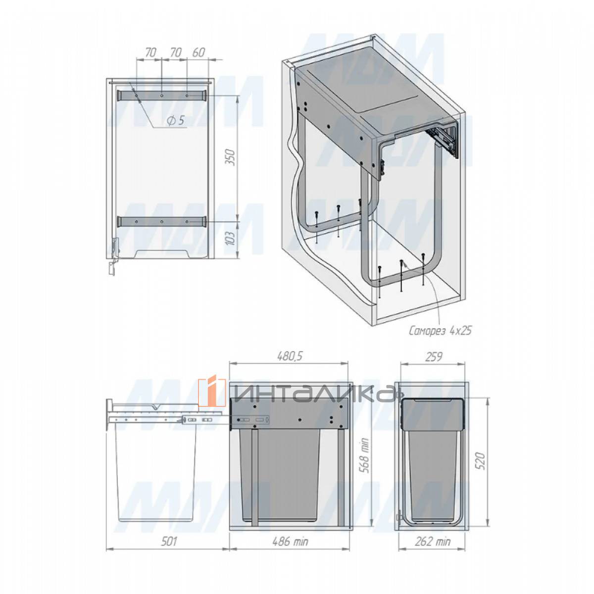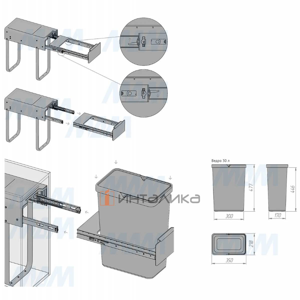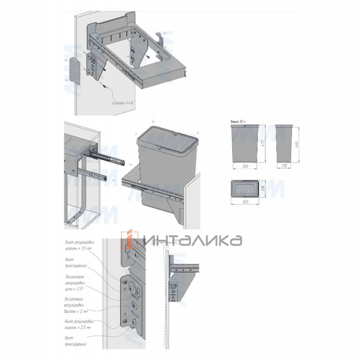 Комплектация: рама с выдвижной частью (в сборе) — 1 шт., ведро с ручкой (в сборе) — 1 шт., установочный крепёж для рамы — 1 компл.