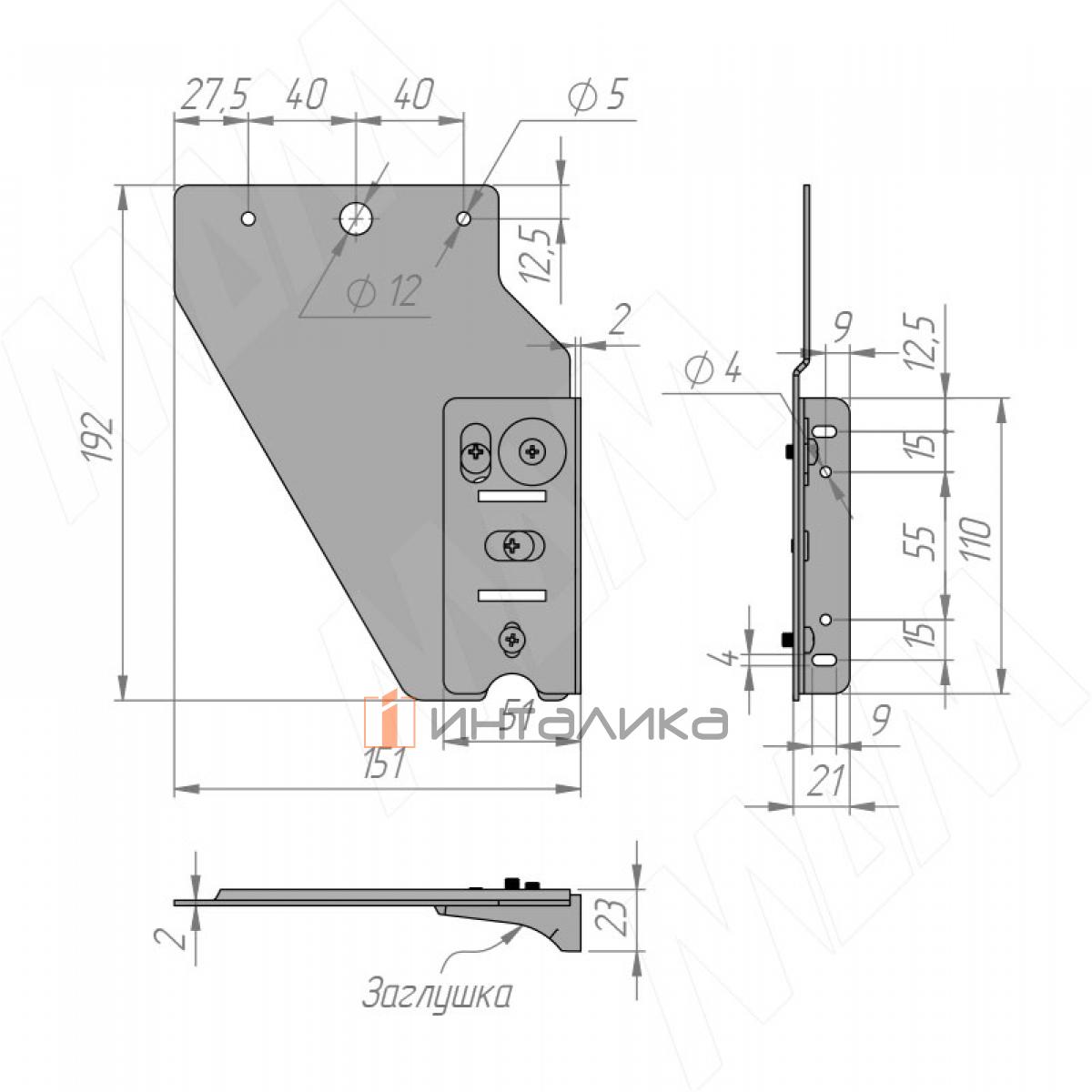 EASYBOX AS Крепления выдвижного фасада для артикулов серии EMB, цвет тёмно-серый, EMB-AS01DG